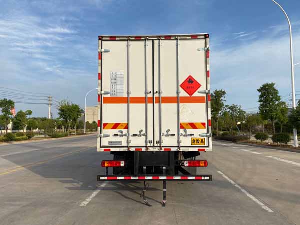 廂體配置:嚴格按照公告尺寸制作。外板采用優(yōu)質(zhì)冷軋鋼板帶百葉窗,內(nèi)飾為導電性能良好的鋁平板有透氣孔,矩形骨架結(jié)構(gòu)內(nèi)部填充防潮阻燃擠朔板,復合加鉚合工藝。廂體四周鋁合金包邊及包角,車廂底板鋪設(shè)防靜電膠皮,廂體前臉50公分高鋪設(shè)防靜電膠皮。后部設(shè)置對開門,可選裝側(cè)門位置,廂體內(nèi)部兩側(cè)安裝捆綁貨物的臥環(huán)。廂體內(nèi)部安裝氣體器及感應防器及防盜報警器。車廂一周粘貼橙色放光帶,箱體粘貼 菱形告示牌,安全告示牌,危險品牌,箱體安裝示廓燈(前白后紅),拖地靜電帶。