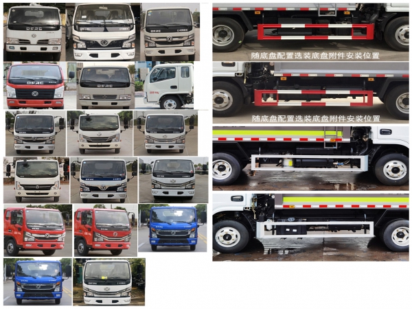 其它 | 該車主要專用裝置由箱體、壓縮系統(tǒng)組成,用于垃圾的收集與清運.側(cè)防護材料為冷彎型鋼/Q235,螺栓連接;后防護由專用裝置代替,下邊緣離地高450mm.選裝方形或弧形車箱;選裝箱體與駕駛室之間多路閥、液壓油箱、液壓管布置;選裝箱體前端爬梯位置;選裝電瓶位置;選裝多路閥罩;選裝填裝器外罩;選裝后密封蓋裝置.選裝不同工作裝置時外形長/后伸(mm)對應(yīng)關(guān)系:①無上料裝置:6500/0,②擺臂裝置:6650/150,③全密封斗裝置:6650/150, ④半密封斗裝置及⑤翻桶裝置:6900/400.發(fā)動機與油耗值(L/100km)的對應(yīng)關(guān)系為:CA4DB1-11E6/16.3,CY4BK161/16.2,CY4BK461/16.2,D20TCIF1/16.3,D20TCIF11/16.3,YCY24140-60/16.3,ZD30D16-6N/16.3,H20-120E60/14.9,Q28-130E60/15.9,CA4DB1-13E6/16.2,Q23-115E60/14.5.隨底盤選裝前面罩,前保險杠,前組合燈具,選裝排半駕駛室,選裝左右油箱位置,隨底盤配置選裝底盤附件安裝位置.僅選用軸距3308mm底盤改裝.選裝直接供電式ETC車載裝置.ABS型號/生產(chǎn)企業(yè):ABS/ASR-12V-4S/4M/襄陽東風(fēng)隆誠機械有限責(zé)任公司.各發(fā)動機凈功率(kW)值如下:D20TCIF1:88,YCY24140-60:99,CA4DB1-11E6:79,ZD30D16-6N:115,CY4BK461:92,CY4BK161:102,Q23-115E60:82,H20-120E60:87,CA4DB1-13E6:93.Q28-130E60:93,D20TCIF11:88.隨底盤選裝氣壇子、尿素罐安裝位置.選裝電瓶安裝位置,選裝污水箱安裝位置.選裝填充器樣式.選裝后部工作裝置. | ||