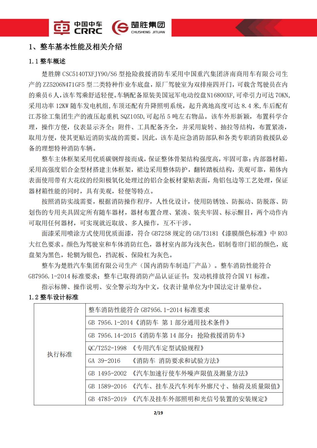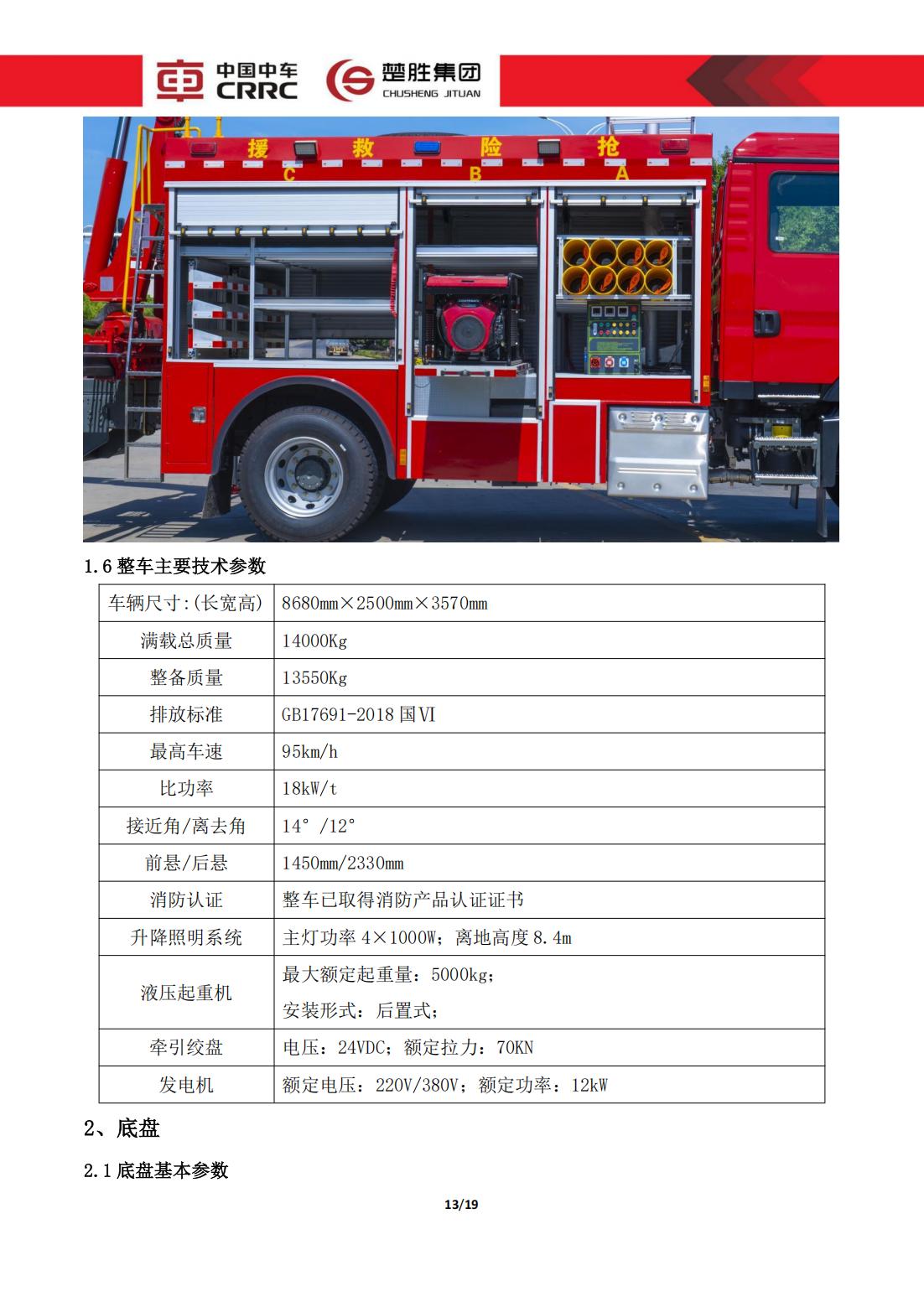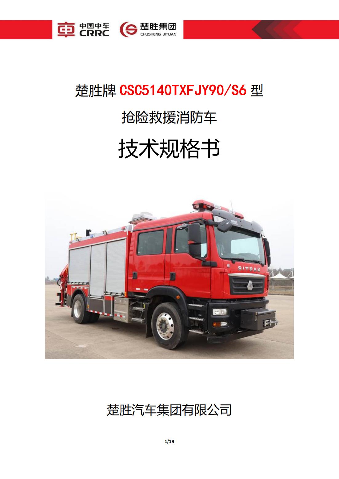 楚勝牌 CSC5140TXFJY90/S6 型 搶險(xiǎn)救援消防車(chē)